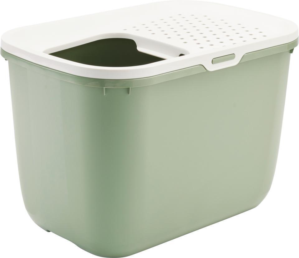 Den store åbning i låget giver nem adgang og udgang, hvilket gør Hop In også perfekt til større katte. Den daglige rengøring af Hop In er en nem opgave. Det øverste låg kan hænges op for at skovle affald ud, og de integrerede håndtag i bunden gør det nemt at flytte og tømme bakken.