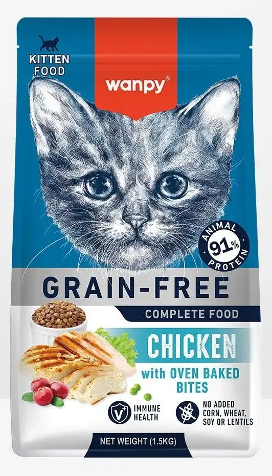 Giv din killing den bedste start i livet med Wanpy Kornfrit Kattefoder til Killinger. Denne opskrift med kylling er rig på animalsk protein og naturlige ingredienser, som støtter vækst, trivsel og sundhed. Foderet bidrager til stærke muskler, en sund fordøjelse og en skinnende pels.