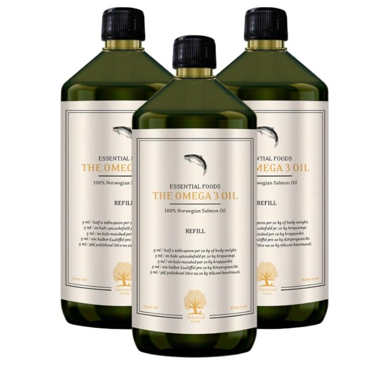 The Omega 3 Oil fra ESSENTIALS er en premium lakseolie fremstillet af 100% ren laks. Olien er naturligt rig på omega-3-fedtsyrer og støtter hundens og kattens hud, pels, led og generelle trivsel. Den fungerer samtidig som en effektiv smagsforstærker, særligt til kræsne dyr. Mange ejere oplever tydelige forbedringer ved daglig brug. Leveres med tilfredshedsgaranti.