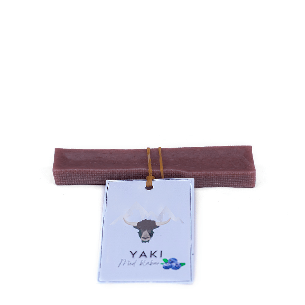 Yaki Blåbær er en proteinrig og glutenfri vegetarisk snack til hunde, fremstillet af hård ost og tilsat blåbær. Snacken produceres af nepalesere efter en original opskrift fra Himalaya og kombinerer naturlige ingredienser med traditionelt håndværk.