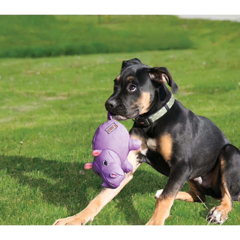 KONG Phatz Flodhest M er et sjovt og blødt hundelegetøj, der er perfekt til både leg og hygge. Det søde flodhestedesign og de forskellige materialer gør legetøjet ekstra spændende for hunden.