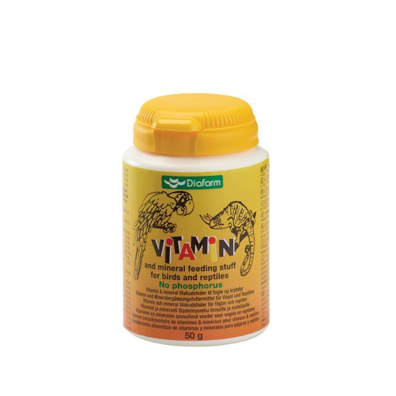 Vitaminer og mineraler uden fosfor – til fugle og krybdyr (50 g)