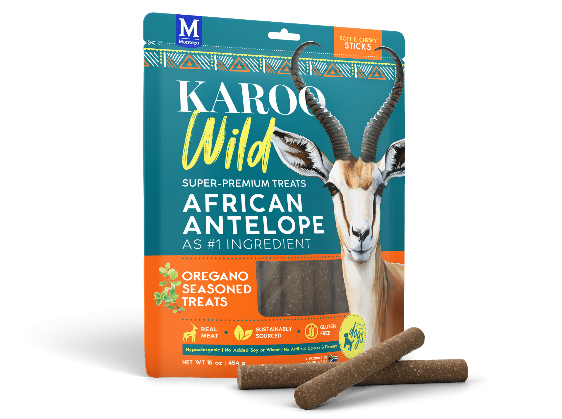 Karoo Wild Sticks Oregano er en super premium hundegodbid fremstillet af bæredygtigt fremskaffet antilopekød fra Afrika. Denne variant er den største i Karoo Wild sortimentet og egner sig godt til hunde, der foretrækker en større godbid eller lidt mere tyggearbejde sammenlignet med mindre snacks.