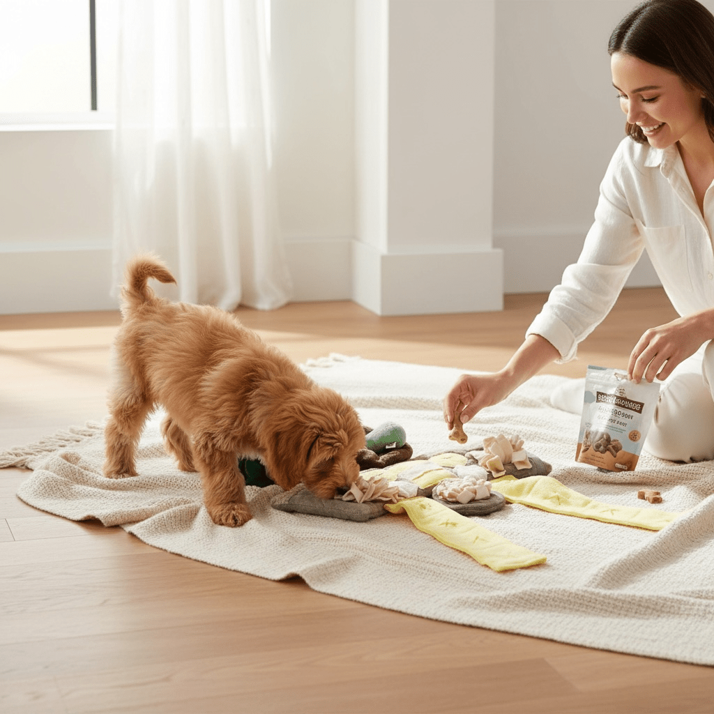 Mental aktivering hjælper hunden med at slappe af, øger koncentrationen og giver ro – uanset om den er ny i snusetræning eller allerede erfaren.