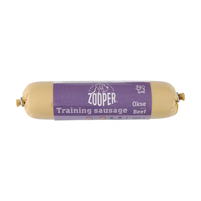 Zooper Training Sausage med lammekød er en lækker, naturlig og skærefast pølse, perfekt til træning, aktivering eller daglig forkælelse. Med hele 76,5% lammekød og en blød konsistens kan den nemt skæres i små bidder, uden at fedte eller smuldre. Ideel til hundetræning, klikkerøvelser eller sporarbejde.